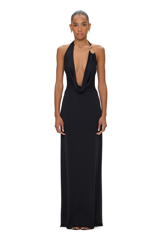 JERSEY MAXI DRESS METAL RING CHOCKER BLACK