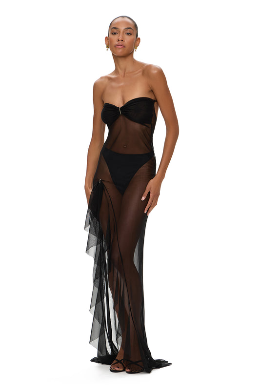 MESH MAXI DRESS WITH BODYSUIT BLACK