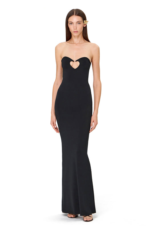 LYCRA MAXI DRESS WITH A HEART ON THE CHEST BLACK