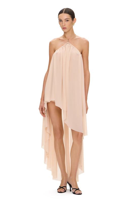 JERSEY ASYMMETRICAL DRESS WITH CHOKER HOOK BEIGE