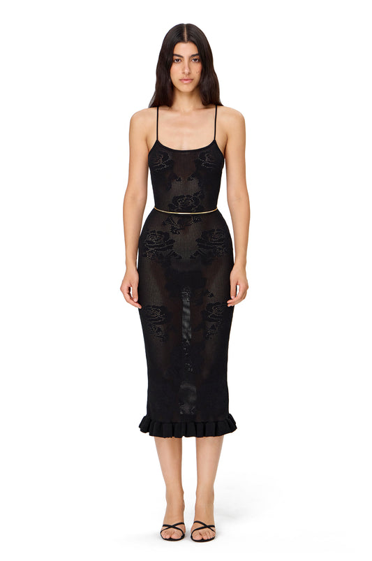 KNITTED OPENWORK MIDI COUTURE DRESS BLACK