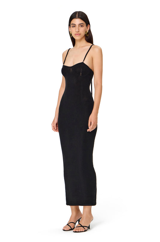 KNITTED MAXI DRESS WITH THIN LONG STRAPS AND HIGHLIGHTED BRA BLACK