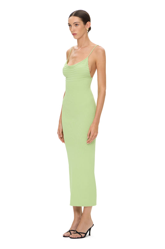 KNITTED MIDI STRAPPY DRESS WITH PLEATED TOP APPLE