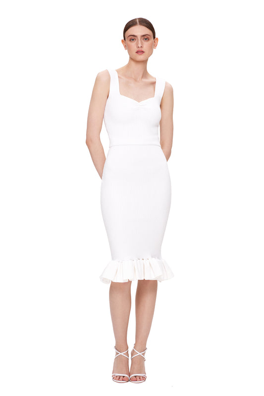 LYCRA LONG SKIRT WITH HIGH SLIT AND METAL SHELL DECOR WHITE